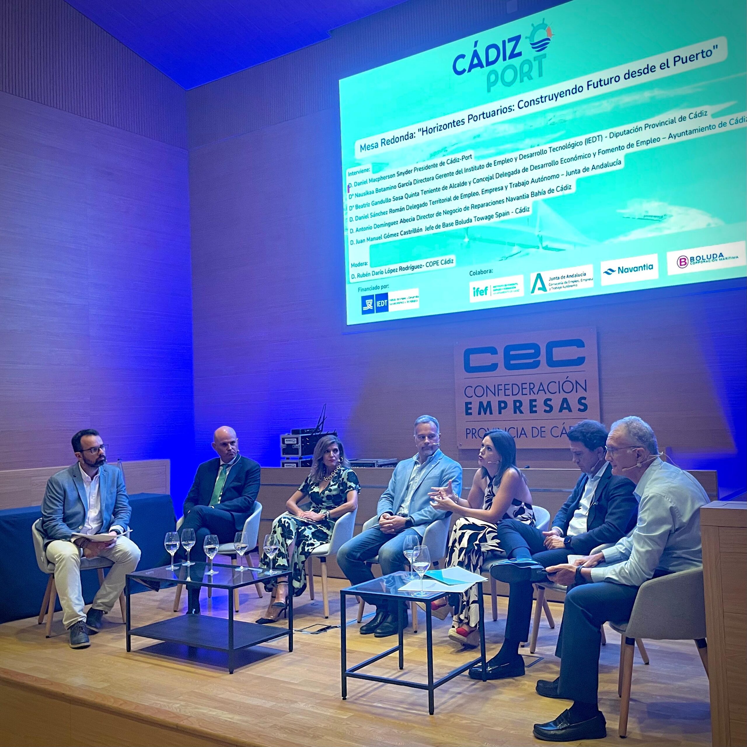 El encuentro contó con la participación de Daniel Macpherson Snyder, presidente de Cádiz-Port; Nausikaa Botamino García, gerente del IEDT de la Diputación de Cádiz; Beatriz Gandullo Sosa, concejala de Desarrollo Económico y Fomento de Empleo del Ayuntamiento de Cádiz; Daniel Sánchez Román, delegado territorial de Empleo, Empresa y Trabajo Autónomo de la Junta de Andalucía; Antonio Domínguez Abecia, director del Astillero Navantia Bahía de Cádiz, y Juan Manuel Gómez Castrillón, representante de Boluda Towage en Cádiz. La moderación corrió a cargo del periodista Rubén López Rodríguez, de COPE Cádiz.